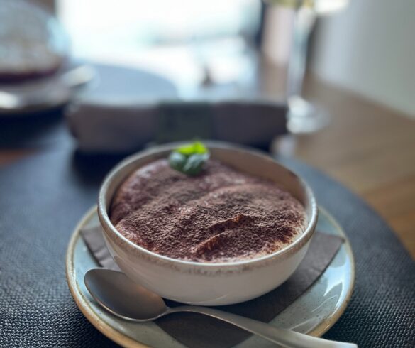 Chiude il percorso il tiramisù al Marsala, morbido, profondo, avvolgente. La crema al mascarpone è vellutata, il cacao è un mantello scuro, il Marsala un sussurro che arriva in fondo al palato, proprio come un ricordo che riaffiora lentamente.