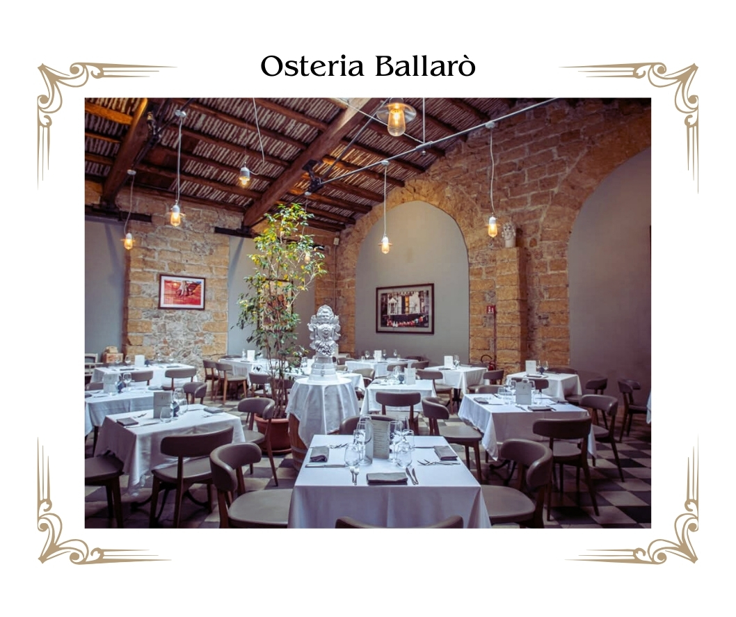 Osteria Ballarò: ideale se desiderate un’atmosfera calda e scenografica, nel fascino delle storiche scuderie di Palazzo Cattolica.
