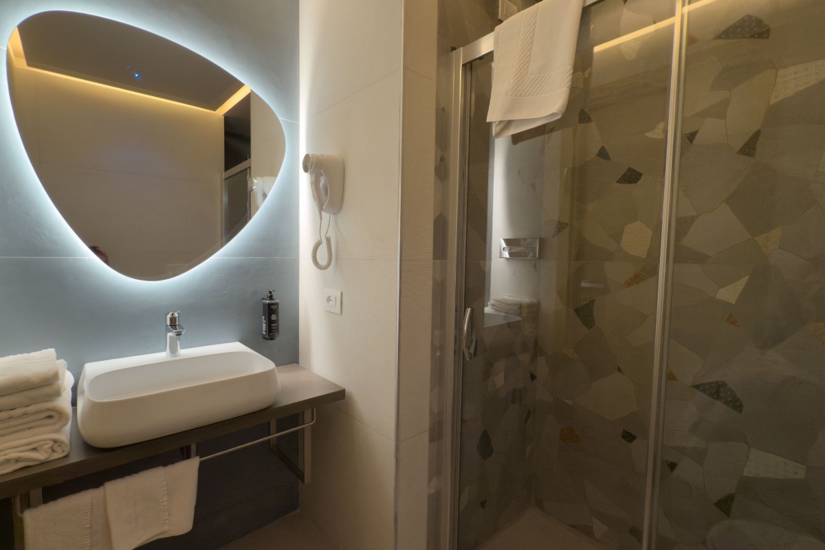 Abbiamo selezionato le tre Junior Suite per una figura precisa di viaggiatore: colui che non separa mai nettamente il piacere dal dovere. Qui lo spazio è disegnato per chi vive la città con un’agenda in mano ma il desiderio di relax nel cuore. Sono ambienti raffinati dove la funzionalità incontra l’estetica: puoi lavorare alla scrivania e, un attimo dopo, dimenticare tutto avvolti nella morbidezza dei letti (matrimoniali o alla francese). Il dettaglio che amiamo: il bagno. Ampio, rigenerante, in alcuni casi dotato sia di vasca che di doccia. È quel piccolo angolo privato dove il tempo frenetico di Palermo finalmente rallenta.