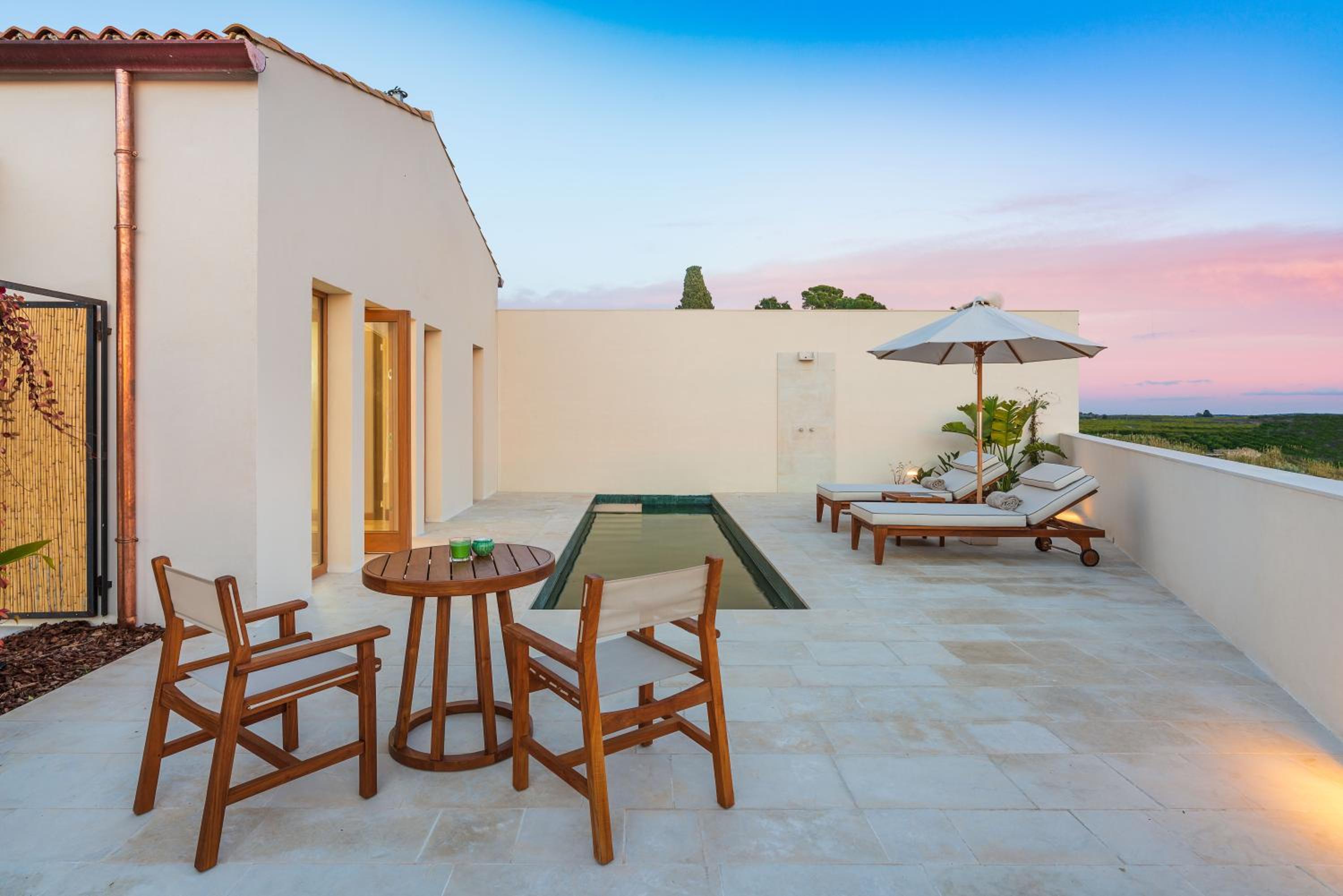 Il resort, contraddistinto da un’atmosfera di silenzio e quiete, offre 26 suite, di cui 2 con piscina privata, e 8 ville, ciascuna dotata di una piscina privata e un patio di oltre 250 mq. Ogni spazio è concepito per regalare un’esperienza avvolgente e personalizzata, unendo la tradizione siciliana a un design raffinato e contemporaneo. Le suite, vere opere d’arte dell’architettura, offrono spaziosi patii riservati, mentre le ville, immerse nella lussureggiante vegetazione, invitano al relax totale.